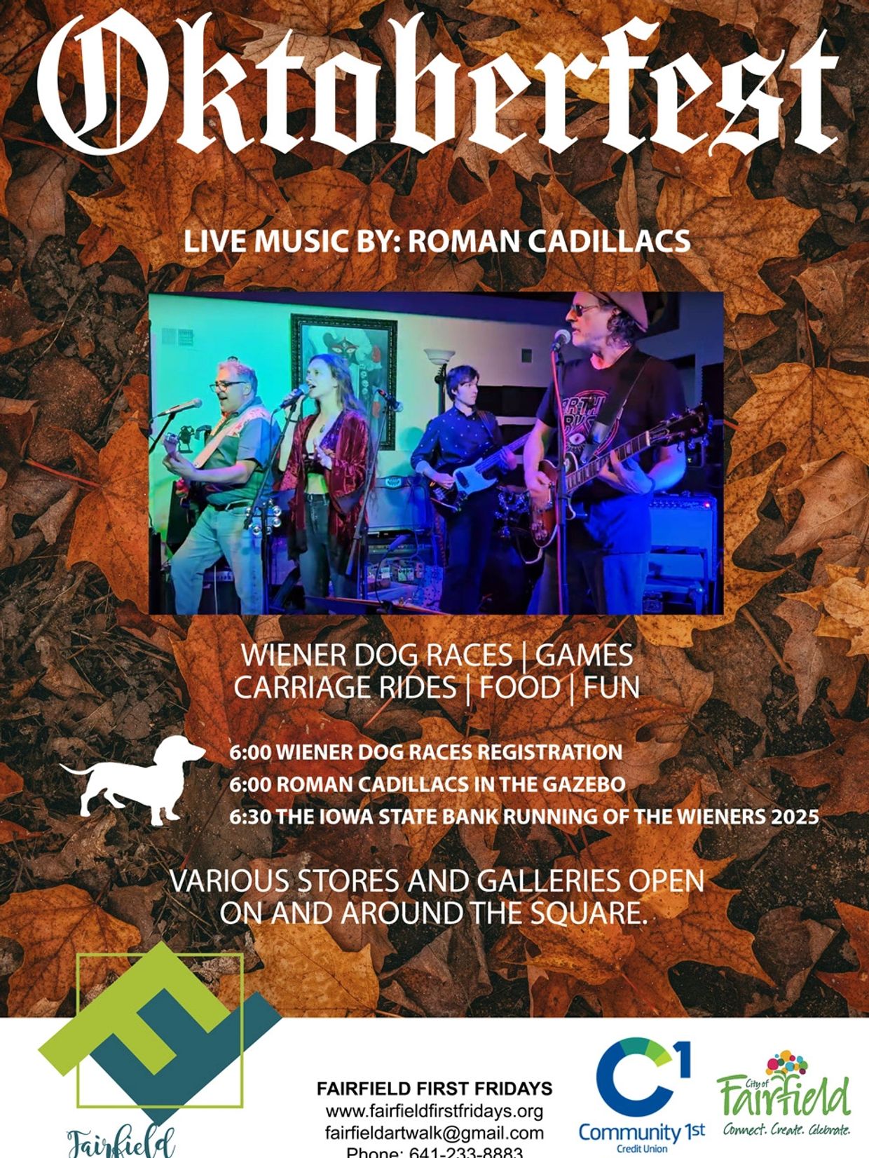 The activities for the evening include live music by The Roman Cadillacs. We will also have the annual Running of Wieners, lawn games, carriage rides, and a few fun activities for the kids. There will be food vendors, artists, crafters, and more set up in Central Park.
